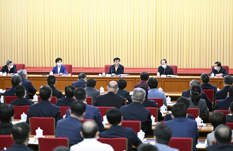 4月21日,習近平總書記關于加強和改進民族工作的重要思想研討會在北京召開,中共中央政治局常委、全國政協主席王滬寧出席并講話。新華社記者 張領 攝